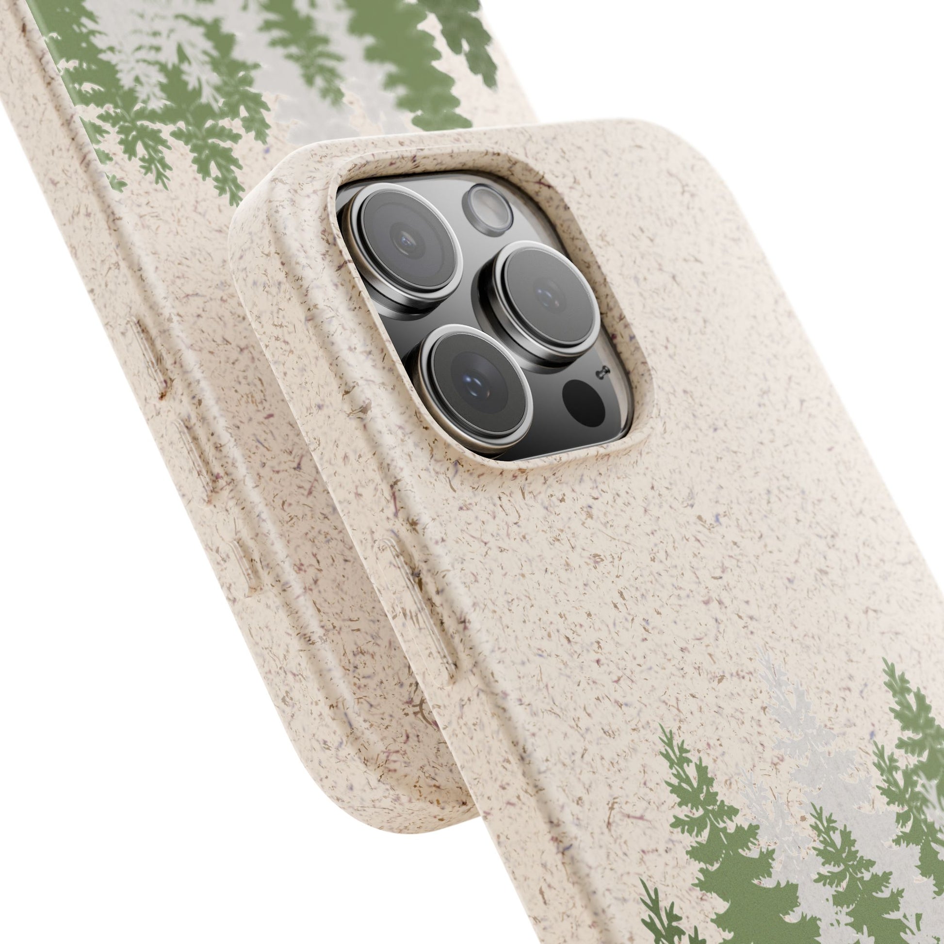Esittelyssä Frosty Spruce Symphony, kompostoituva puhelinkuori, joka on virkistävä kuin talvituulahdus! Persikanvärisen taustan, ihastuttavan vihreän kuusen ja lumen peittämän täydellisyyden ansiosta puhelimesi on pukeutunut tekemään vaikutuksen ja pelastamaan planeetan.