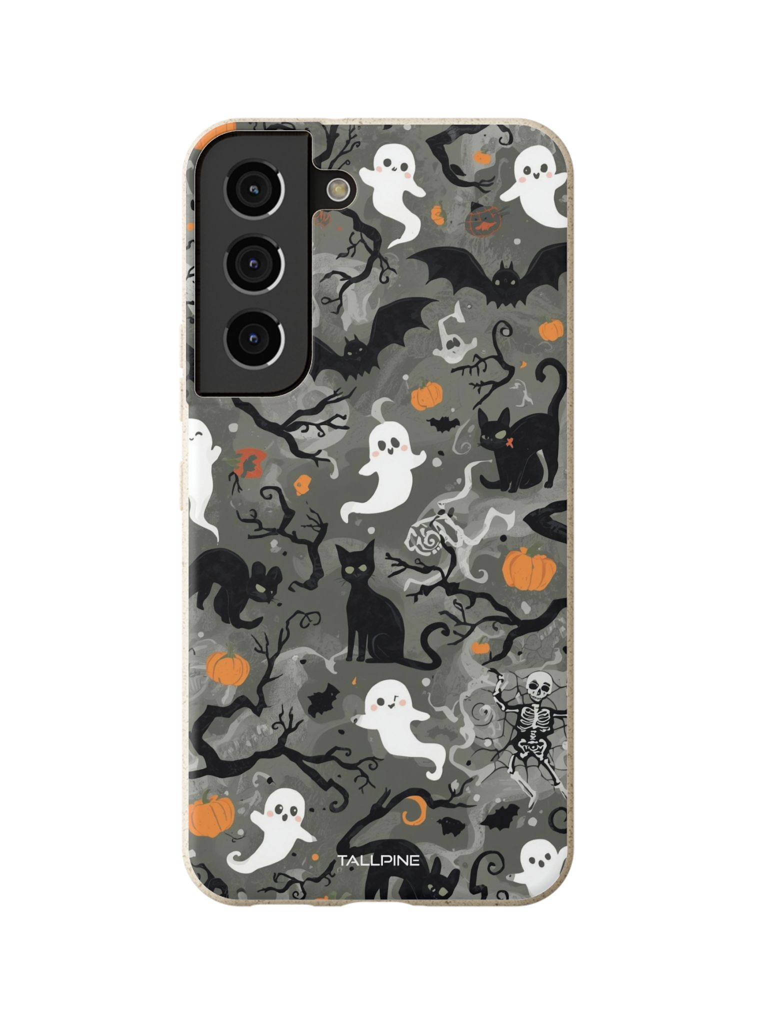 The smoky gray background sets the stage for this cute-meets-creepy woodland world, with subtle tones of white, black, muted orange, and dark green adding warmth and Halloween flair.